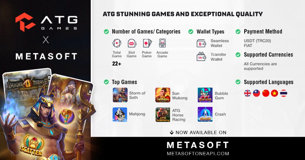 The IGaming industry thrives on innovation, accessibility, and engaging content, and the collaboration between METASOFT and ATG exemplifies these principles. ATG, renowned for its stunning games and exceptional quality, joins forces with METASOFT, a leader in game aggregation. This partnership promises to empower operators with an exceptional gaming portfolio, streamlined operations, and tools to captivate global audiences. METASOFT x ATG: Advanced API for Seamless Integration The integration of ATG’s games into operator platforms is streamlined through METASOFT’s robust API. This advanced solution minimizes the complexities of adding new games, helping operators save both time and resources. With efficient updates, scalability, and minimal downtime, the API ensures operators can stay adaptable to industry trends and player expectations. Moreover, METASOFT’s integration platform enhances operational efficiency by providing operators with tools to manage diverse gaming content effectively. Additionally, by facilitating smooth collaboration, METASOFT enables operators to expand their game offerings without disruptions, ensuring players enjoy a consistent and cohesive experience. Unparalleled Gaming Portfolio ATG brings a meticulously crafted selection of games, including slot games, poker, and arcade favorites. Furthermore, with over 22 captivating titles, their portfolio includes standout hits like Storm of Seth, Sun Wukong, Bubble Gum, and the innovative ATG Horse Racing. Moreover, each game combines vibrant visuals, engaging storylines, and user-friendly mechanics to create unforgettable experiences. In addition, through METASOFT’s extensive network, operators gain direct access to this exclusive collection, expanding their offerings to attract diverse player demographics. This collaboration undoubtedly ensures that operators remain competitive by delivering top-tier content in the rapidly evolving IGaming market. Global Accessibility and Flexible Payment Options ATG’s multilingual support, currently offering English, Traditional Chinese, Simplified Chinese, and Vietnamese (with Thai on the way), ensures operators can cater to Asian markets. Additionally, this linguistic flexibility allows platforms to engage players across diverse regions, fostering stronger player loyalty Adding to its global reach, ATG supports all currencies, allowing operators to select the currency that best aligns with their platform and target audience. This versatility ensures operators can provide a localized experience for players while maintaining seamless financial operations. Additionally, ATG offers settlement methods in both FIAT (TWD) and USDT (TRC20), enabling operators to manage transactions conveniently. In short, the partnership between METASOFT and ATG is a testament to their shared commitment to innovation and quality in IGaming. Operators benefit from ATG’s stellar gaming portfolio, supported by METASOFT’s dependable integration capabilities. Together, they set new standards for engaging and accessible entertainment, empowering operators to captivate players and achieve lasting success in the competitive IGaming landscape. Contact Us :https://t.me/MetasoftRexhttps://t.me/richard_metasoftoneapihttps://t.me/ember_metasoftoneapi