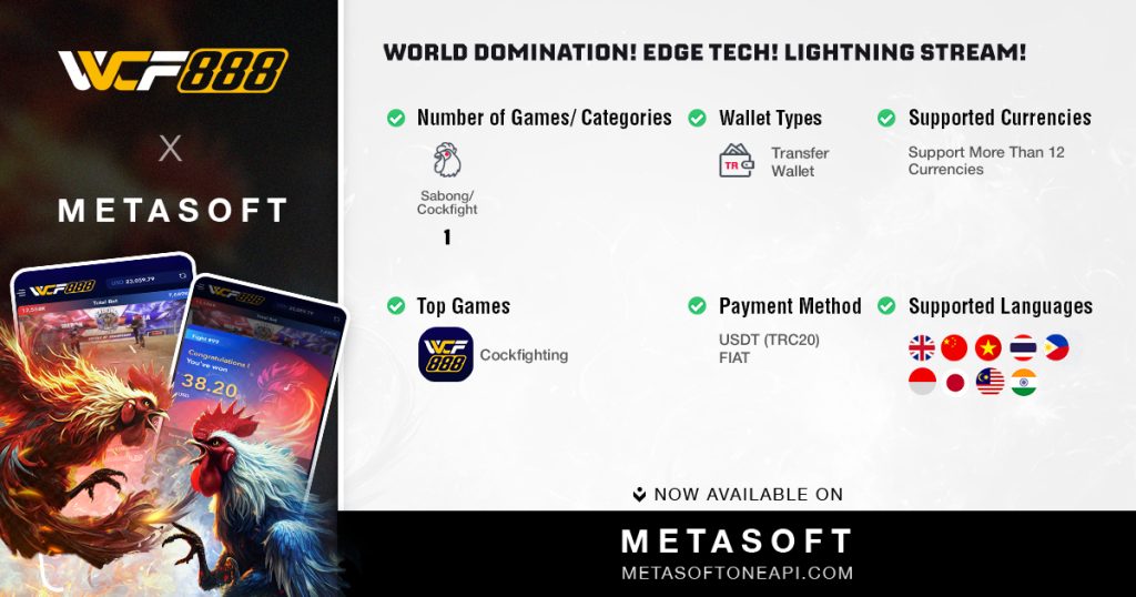 The collaboration between METASOFT and WCF888 signals a new era in IGaming, bringing together the strengths of two industry leaders. WCF888, with its lightning-fast cockfighting streams, integrates effortlessly with METASOFT’s stable platform, providing operators with an efficient and exciting gaming experience. This partnership ensures accessibility, reliability, and a unique form of entertainment that appeals to global markets. METASOFT & WCF888: Effortless Onboarding for Operators The collaboration between METASOFT and WCF888 leverages a powerful API that facilitates the seamless integration of WCF888’s exciting cockfighting game into operator platforms. Furthermore, this straightforward integration process minimizes technical barriers, allowing operators to quickly offer WCF888’s captivating content to their players. Additionally, the API ensures reliable performance and supports future growth, enabling operators to scale and adapt to evolving market demands effortlessly. With this partnership, METASOFT and WCF888 provide operators with the tools to enhance player engagement, offering a smooth and engaging gaming experience that drives long-term success. Unmatched Cockfighting Entertainment with WCF888 WCF888 truly excels in delivering high-quality, lightning-fast cockfighting streams that not only engage players but also provide them with an immersive experience. Moreover, the platform supports transfer wallet payments, offering multiple currency options, including USDT (TRC20) and various fiat currencies. This flexibility, therefore, allows operators to present convenient payment solutions while simultaneously ensuring seamless gameplay for players. Furthermore, WCF888’s unwavering commitment to reliable, real-time cockfighting entertainment significantly solidifies its position as a top-tier offering for operators who are looking to stand out in the highly competitive IGaming space. Expanding Reach with Multilingual Capabilities WCF888’s support for nine languages—including Chinese, English, Vietnamese, Japanese, and Malay—provides a significant advantage for operators aiming to attract a global player base. Additionally, when combined with METASOFT’s robust platform, this collaboration empowers operators to deliver localized and engaging experiences. As a result, these efforts resonate with diverse audiences and enhance player satisfaction and retention. In brief, the METASOFT and WCF888 partnership offers operators an unparalleled opportunity to expand their platforms with seamless integration, global accessibility, and premium cockfighting content. By addressing both operator needs and player expectations, this collaboration sets a new standard in IGaming innovation and engagement. Contact Us :https://t.me/MetasoftRexhttps://t.me/richard_metasoftoneapihttps://t.me/ember_metasoftoneapi