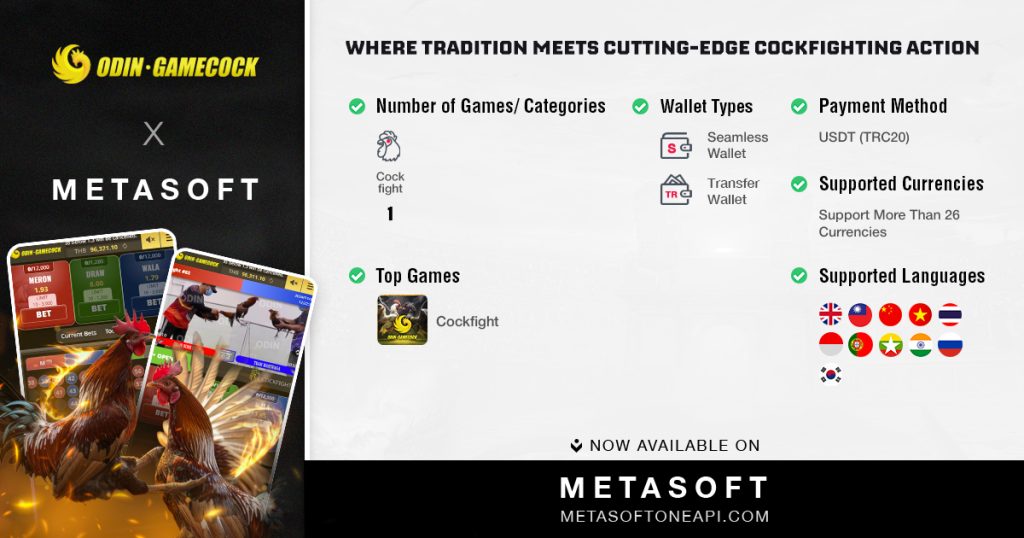 Odin Gamecock and METASOFT have joined forces to bring the world of cockfighting into the digital IGaming space. Odin Gamecock, known for combining tradition with cutting-edge gameplay, enhances its reach through METASOFT’s stable and reliable aggregation platform. Together, they create a seamless solution that empowers operators to offer a unique and culturally resonant experience to players worldwide. Advanced API for Seamless Integration The collaboration between METASOFT and Odin Gamecock simplifies the onboarding process for operators through an advanced API. This ensures swift and efficient integration of Odin Gamecock’s cockfighting game while eliminating the challenges of managing multiple providers. Operators benefit from METASOFT’s aggregation platform and Odin Gamecock’s focus on quality, offering players a seamless and engaging experience. Innovative Cockfighting Entertainment for Operators Odin Gamecock’s commitment to cockfighting as its sole focus provides operators with a unique, highly specialized offering tailored to a global audience. Cockfighting holds deep cultural and traditional significance in numerous Asian and non-Asian regions, making it a natural fit for the online casino industry. The sport’s blend of real-time competition and thrilling betting opportunities attracts players seeking engaging and authentic experiences. Moreover, Odin Gamecock leverages modern technology to bring this age-old tradition into the digital age. Features such as 24/7 live streaming, seamless betting interfaces, and multi-device compatibility ensure accessibility for players worldwide. Additionally, integrating live commentary, high-quality visuals, and transparent betting systems enhances player trust and engagement. Operators can provide a distinctive gaming experience through this partnership, standing out in a competitive market while catering to a culturally relevant demand. Global Accessibility with Language and Currency Support Odin Gamecock’s support for 11 languages and over 25 currencies makes it ideal for operators targeting international markets. Furthermore, by accommodating diverse player preferences and payment options, this collaboration enhances accessibility, increasing player satisfaction and retention. Additionally, operators can confidently expand their reach and cater to global audiences. In short, the partnership between METASOFT and Odin Gamecock brings tradition and innovation together, providing operators with a seamless integration process and a unique offering for players. Furthermore, with an advanced API, multilingual and multi-currency support, and a focus on cockfighting entertainment, this collaboration is set to redefine the IGaming landscape. Thus, METASOFT and Odin Gamecock pave the way for operators to offer engaging, culturally resonant gaming experiences. Contact Us :https://t.me/MetasoftRexhttps://t.me/richard_metasoftoneapihttps://t.me/ember_metasoftoneapi