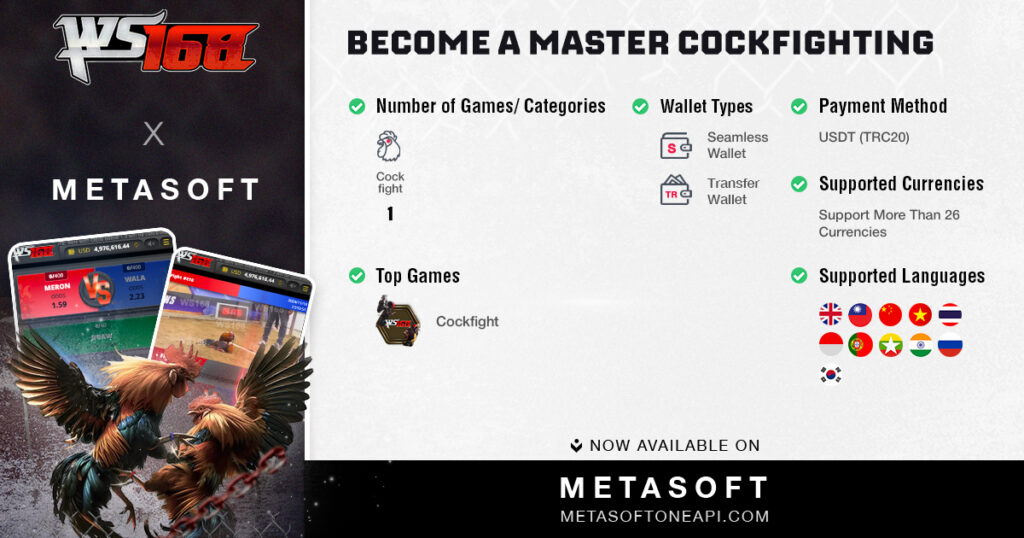 The world of IGaming continues to expand, and the collaboration between METASOFT and WS168 signals another significant milestone. WS168, renowned for its niche focus on cockfighting, brings its expertise and game offerings to operators worldwide through METASOFT‘s aggregation platform. This partnership promises seamless integration, global market access, and an enriched gaming experience tailored to both operators and players. METASOFT and WS168: Advanced API for Seamless Integration METASOFT and WS168 have joined forces to deliver a seamless integration experience through their collaborative API. This partnership ensures operators can easily access WS168’s cockfighting game while bypassing the usual technical complexities of integrating a new provider. By leveraging METASOFT’s aggregation platform, operators gain a streamlined onboarding process, reducing implementation time and minimizing disruptions. This integration enables operators to swiftly offer WS168’s engaging cockfighting game to players, focusing on delivering exceptional entertainment with minimal technical overhead. The Unique Appeal of WS168’s Cockfight Game WS168 stands out in the IGaming sector with its singular focus on cockfighting. As one of the most traditional and exciting forms of betting, cockfighting attracts a dedicated player base. Moreover, WS168’s Cockfight game leverages this popularity, offering operators a lucrative opportunity to tap into a niche market. In addition, with features like real-time betting and engaging visuals, it has captured the attention of players globally. This partnership provides a powerful solution for operators seeking to expand their offerings in emerging markets. Global Reach with Multilingual and Multi-Currency Support WS168 supports a wide range of languages, including 11 major languages such as English, Chinese, Vietnamese, and more. Additionally, WS168 supports 25 currencies, including USD, VND, and IDR, making it adaptable for various markets. This extensive support simplifies localization for operators and enhances the accessibility of WS168’s games to players worldwide. In conclusion, the partnership between METASOFT and WS168 redefines what operators can achieve in the IGaming market. Furthermore, by combining METASOFT’s reliable aggregation platform with WS168’s expertise in cockfighting entertainment, this collaboration provides operators with a unique and efficient solution to expand their gaming offerings. METASOFT and WS168 pave the way for operators to deliver engaging content, reach a broader audience, and enhance their players’ gaming experiences effortlessly. Contact Us :https://t.me/MetasoftRexhttps://t.me/richard_metasoftoneapihttps://t.me/ember_metasoftoneapi