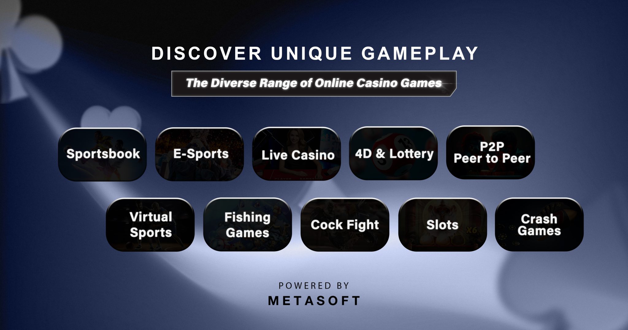 METASOFT connects operators to a wide range of popular games by partnering with leading brands in the IGaming industry, offering easy access to premium game content via a unified platform. With seamless API integration, operators can showcase diverse game categories—like Sportsbooks, E-Sports, Slots Games, and Live Casinos—without the complexity of separate integrations.